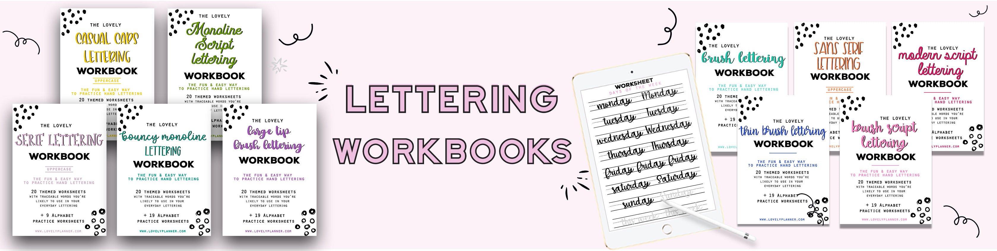 Welcome Offer - BUNDLE of 5 Lettering Workbooks with 190 Hand Lettering Practice Worksheets - for Print & ProcreateRegular price $81.00 USDRegular priceUnit price / per$81.00 USDSale price $81.00 USD