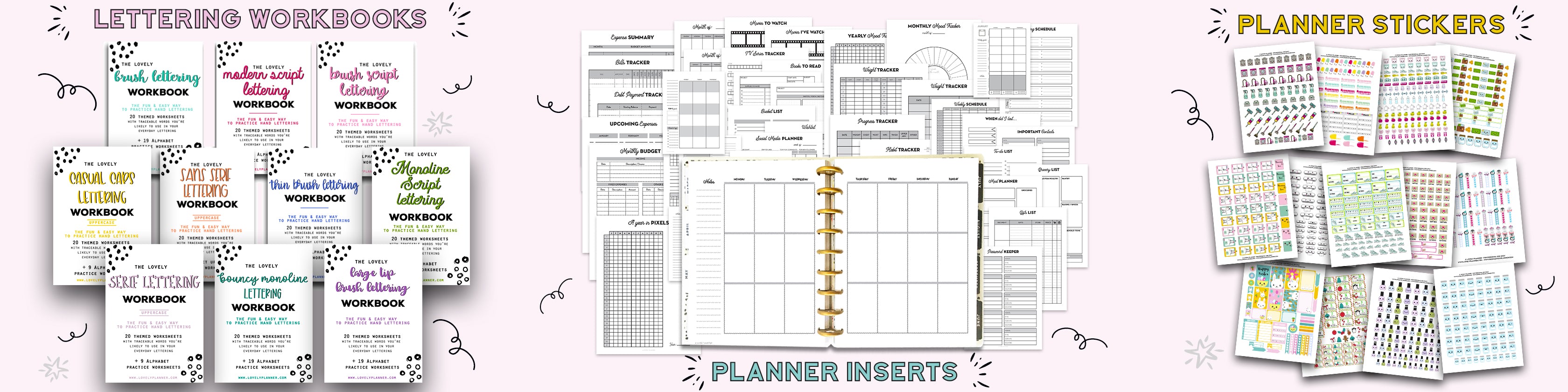 Mega BUNDLE: Ultimate Planner Bundle + Lettering Workbooks + Kawaii Stickers Pack5.0 / 5.0 (10) 10 total reviews Regular price $47.00 USDRegular priceUnit price / per$225.00 USDSale price $47.00 USDSale