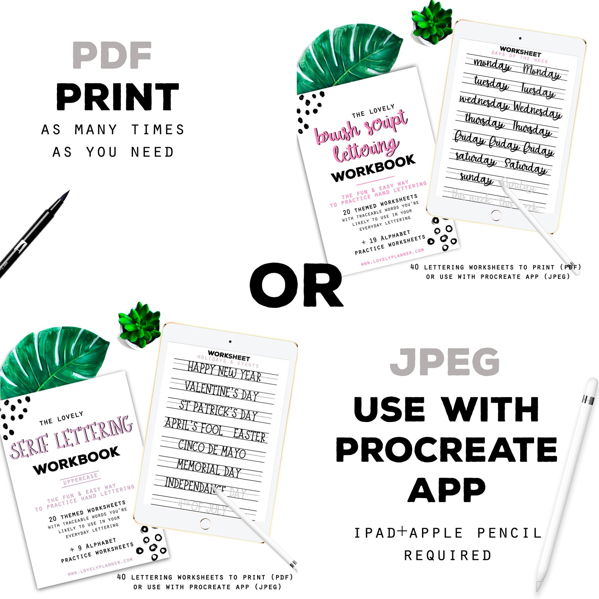 BUNDLE OF 10 LETTERING WORKBOOKS (Printable & Procreate App) :