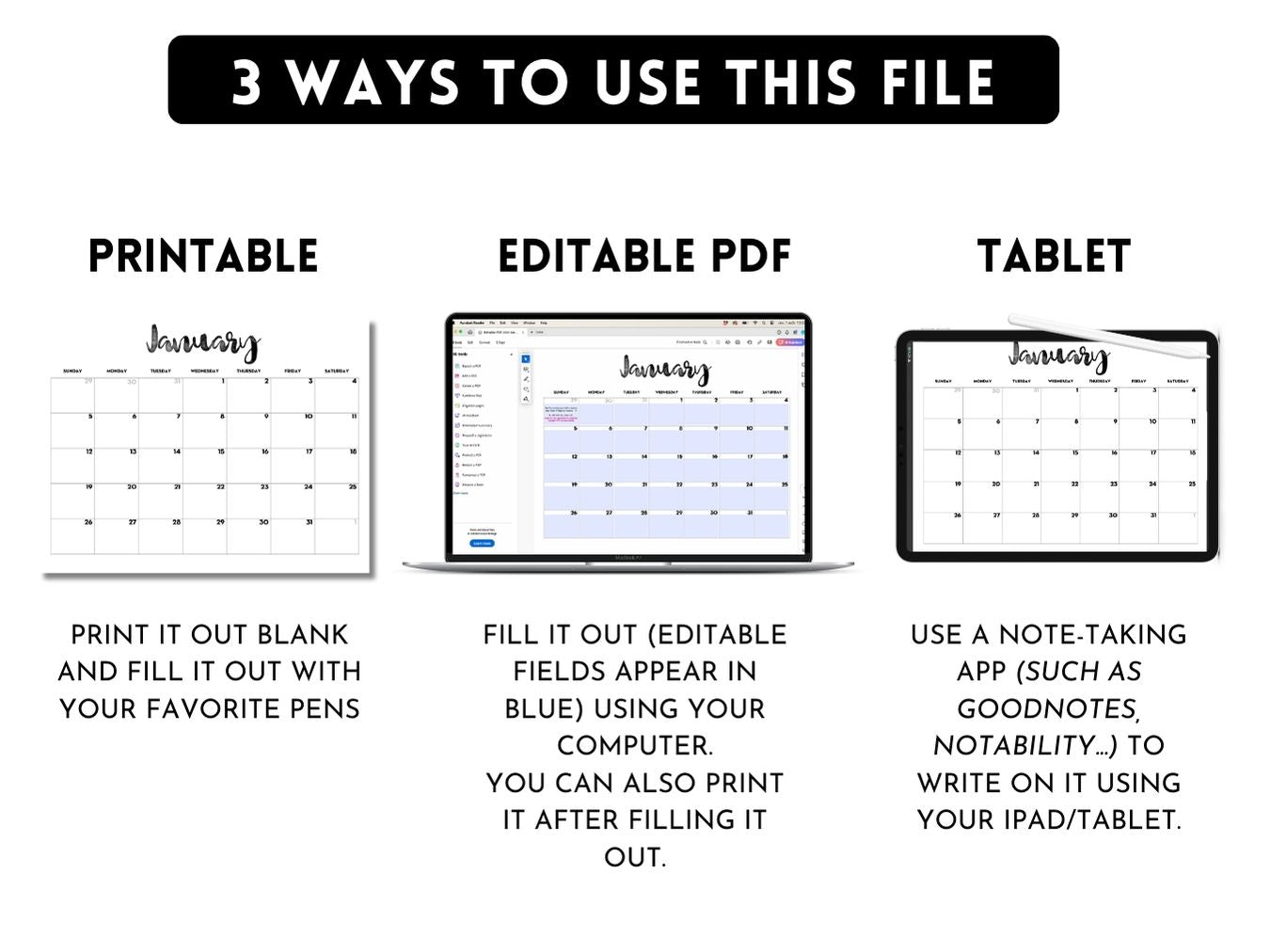 😉 Good to know: This Editable 2025 Monthly Calendar is included as a bonus gift in the Ultimate Planner Bundle and in the Mega Bundle!