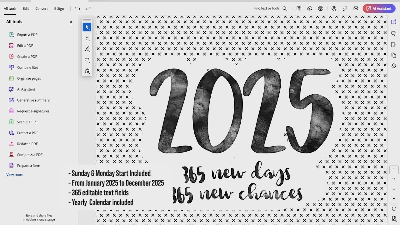 - you also get a blank, ready-to-print, PDF file in case you don't want to edit your calendar before printing.