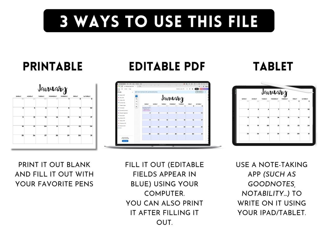 😉 Good to know: This Editable 2026 Monthly Calendar is included as a bonus gift in the Ultimate Planner Bundle and in the Mega Bundle!