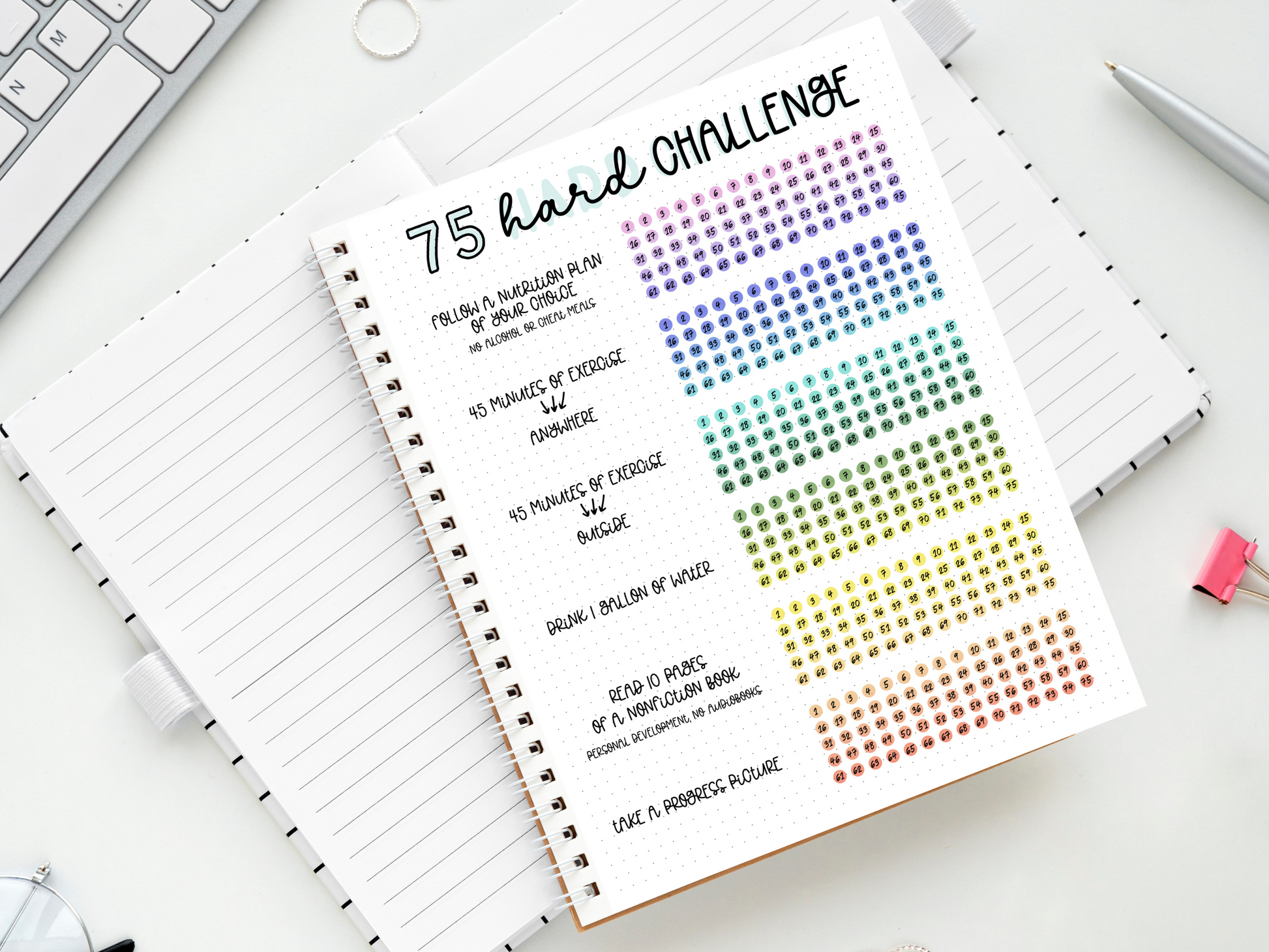 75 Hard Challenge Tracker Page - Bullet journal style - EDITABLE PRINTABLE PDF