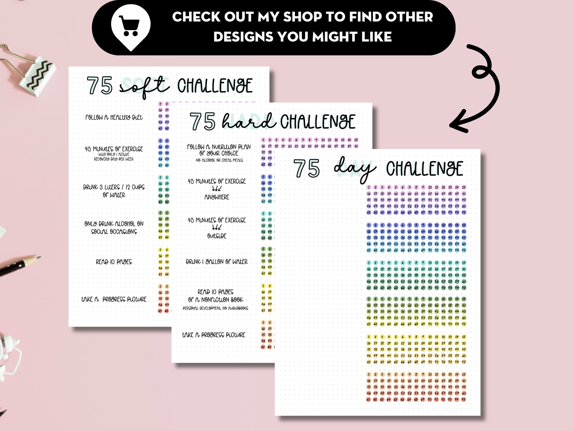 Also available as a pack of 3 75-Day Challenge Trackers: Soft/Hard/Custom