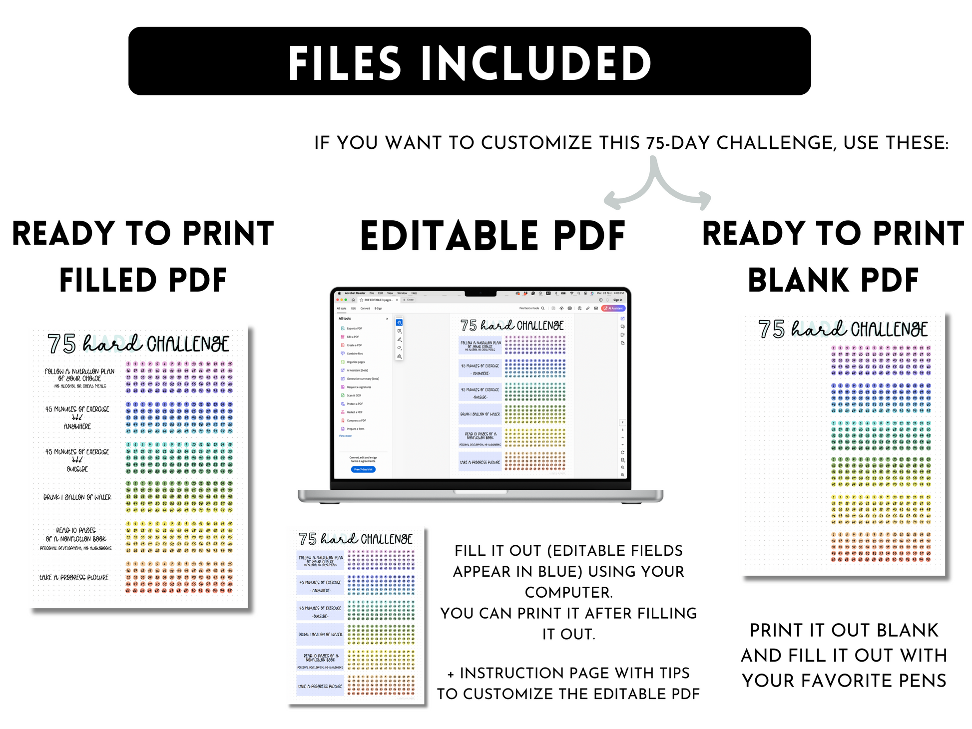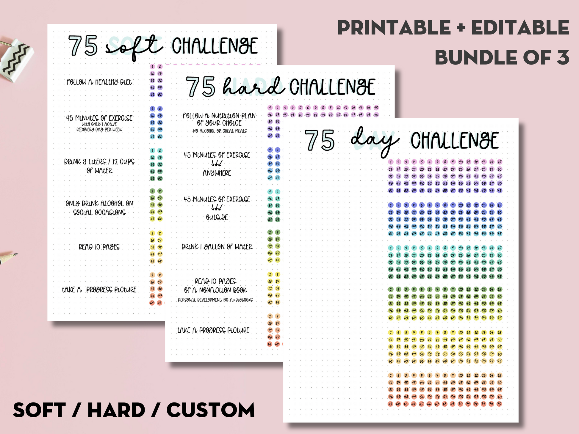 Bundle of 3: 75 Soft/Hard/Custom Challenge Tracker - Editable PDF