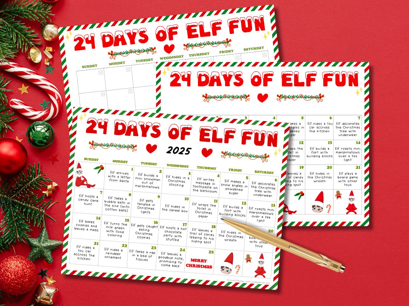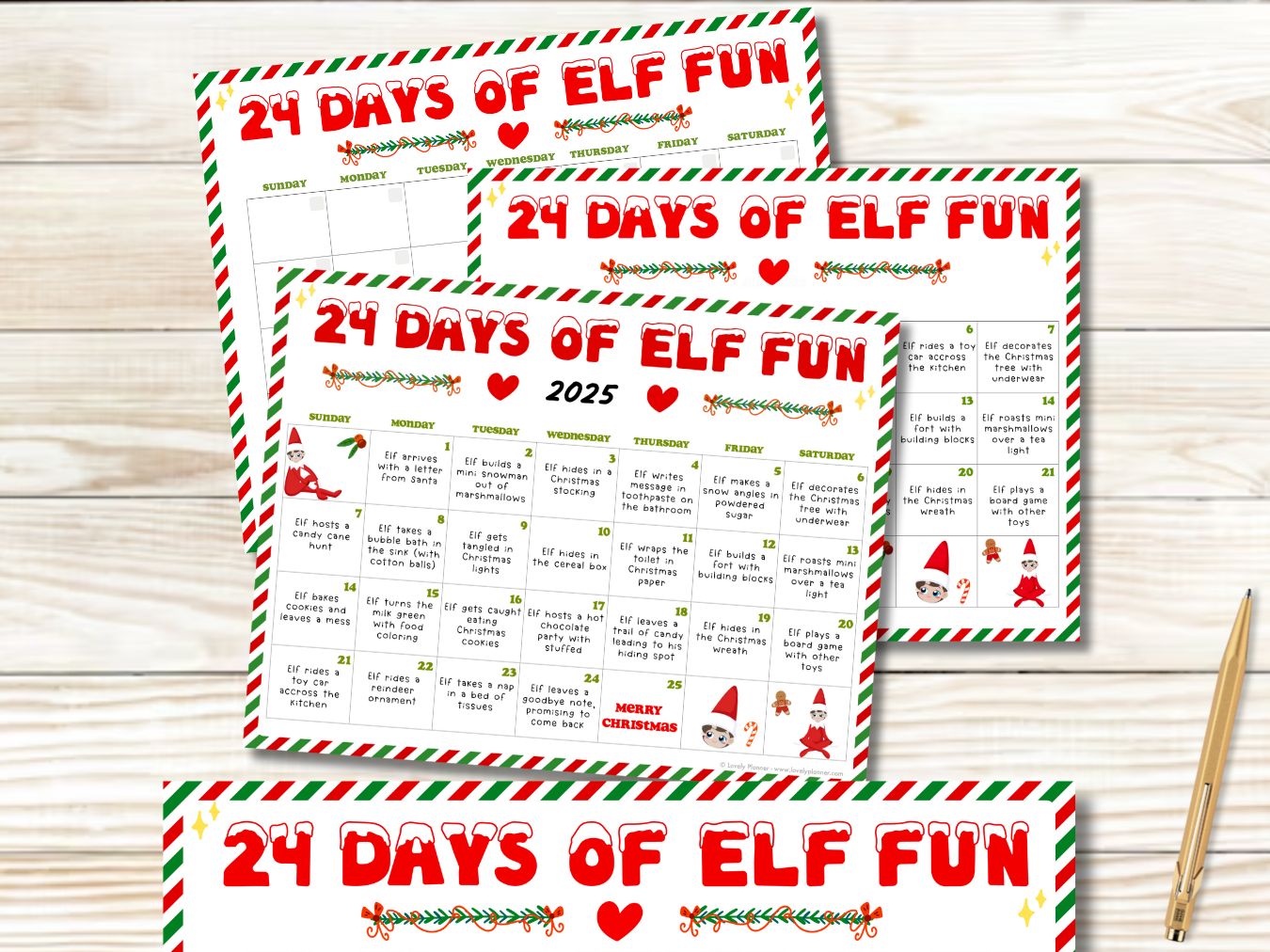 Plan your elf's daily antics with ease using this Editable Elf Calendar Printable! This 24-day Christmas Elf Activity Calendar helps parents organize the elf's fun and creative surprises each day of the holiday season for their little ones.