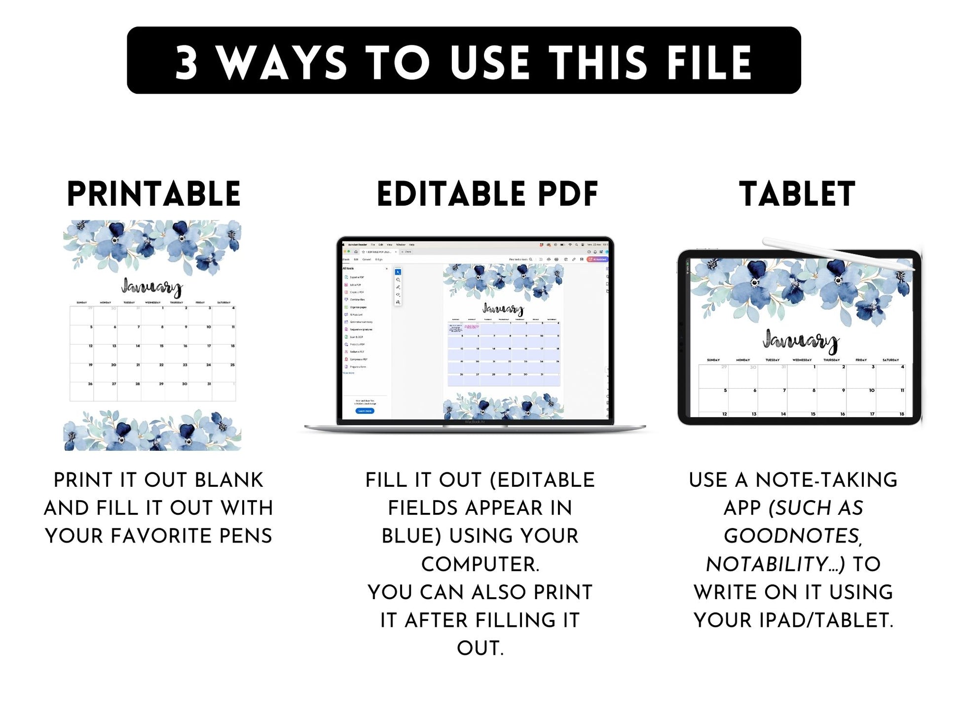 - you also get a blank, ready-to-print, PDF file in case you don't want to edit your calendar before printing.