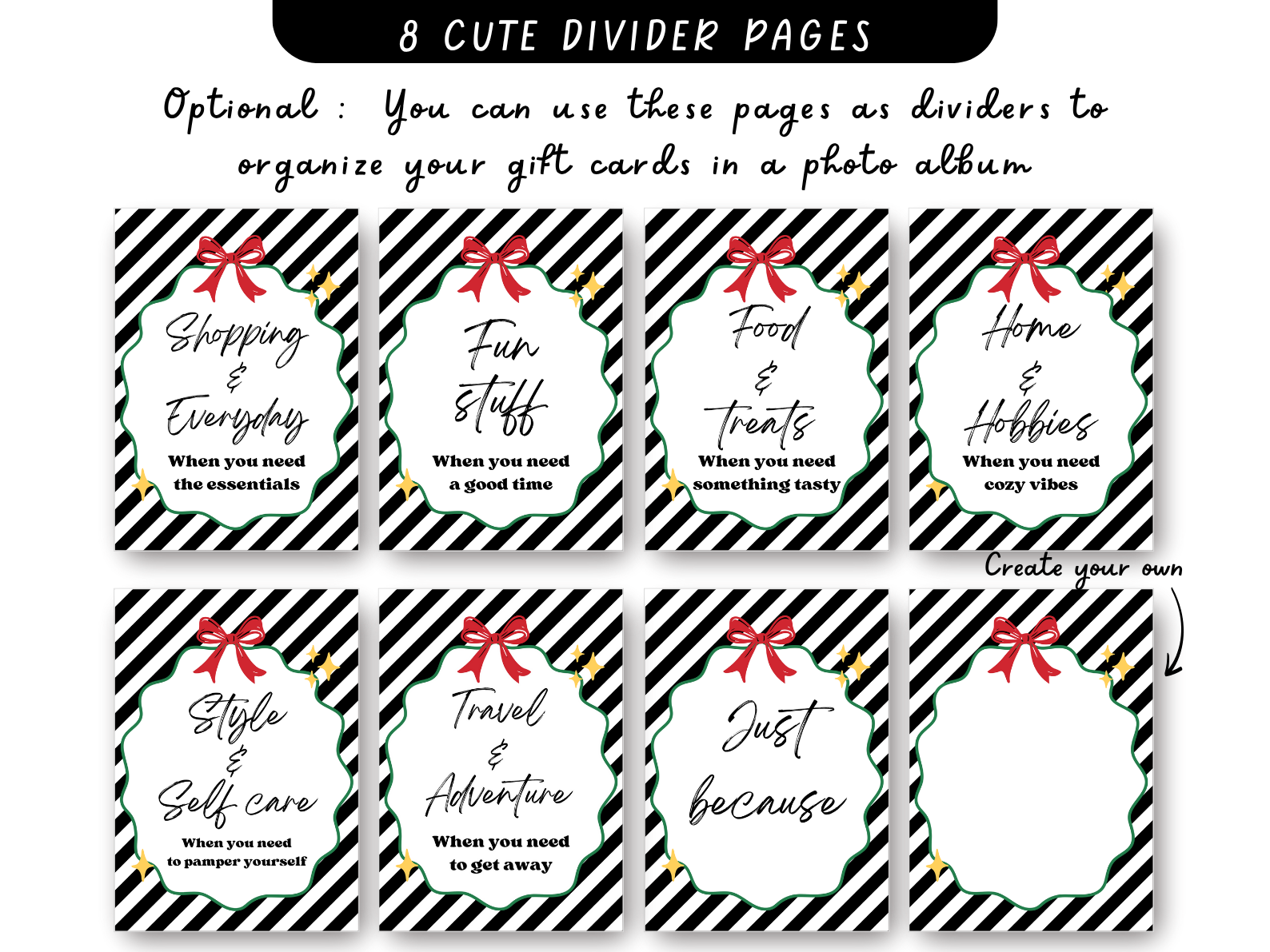 ✔ 50 cute & practical gift card pages