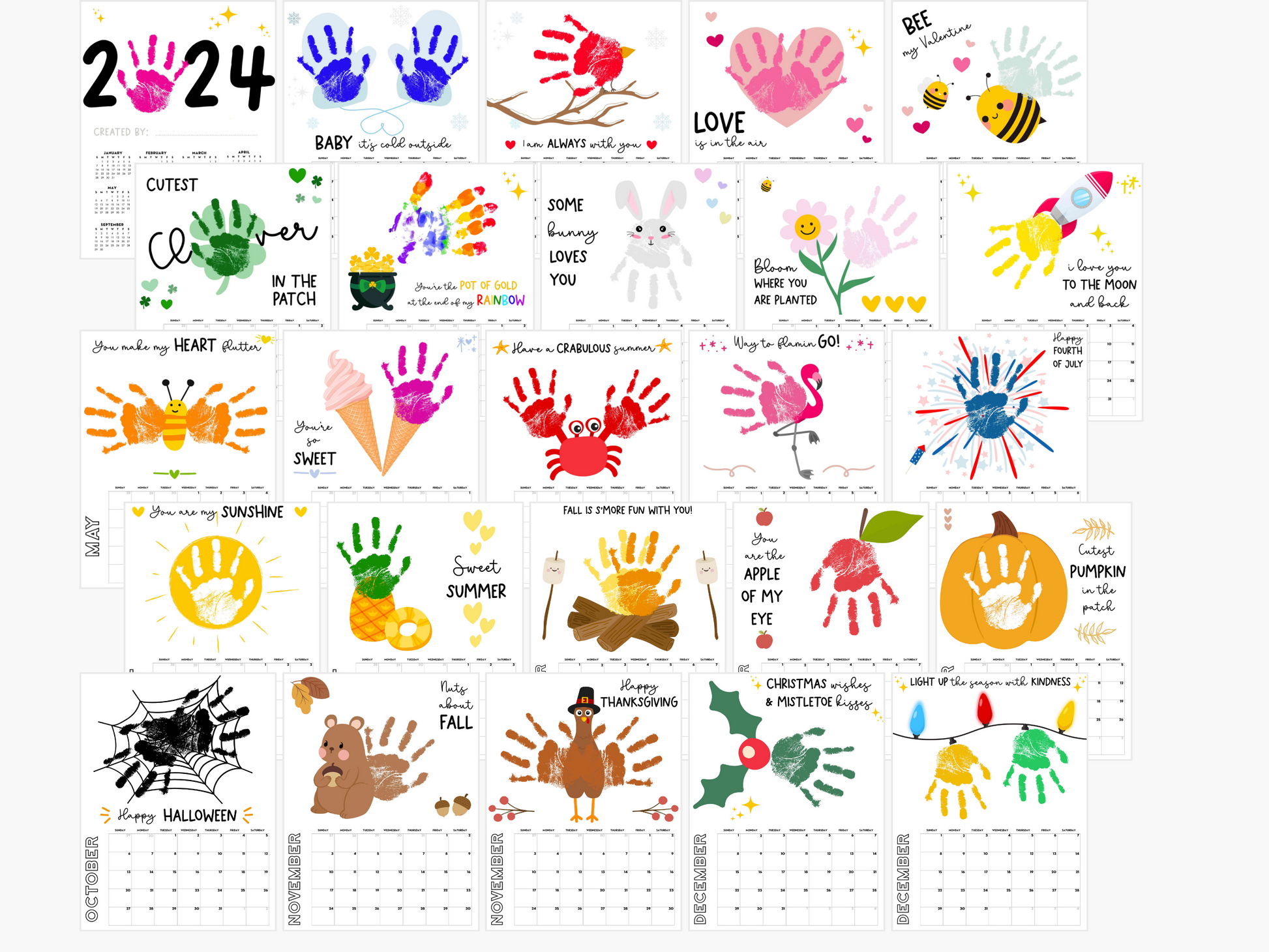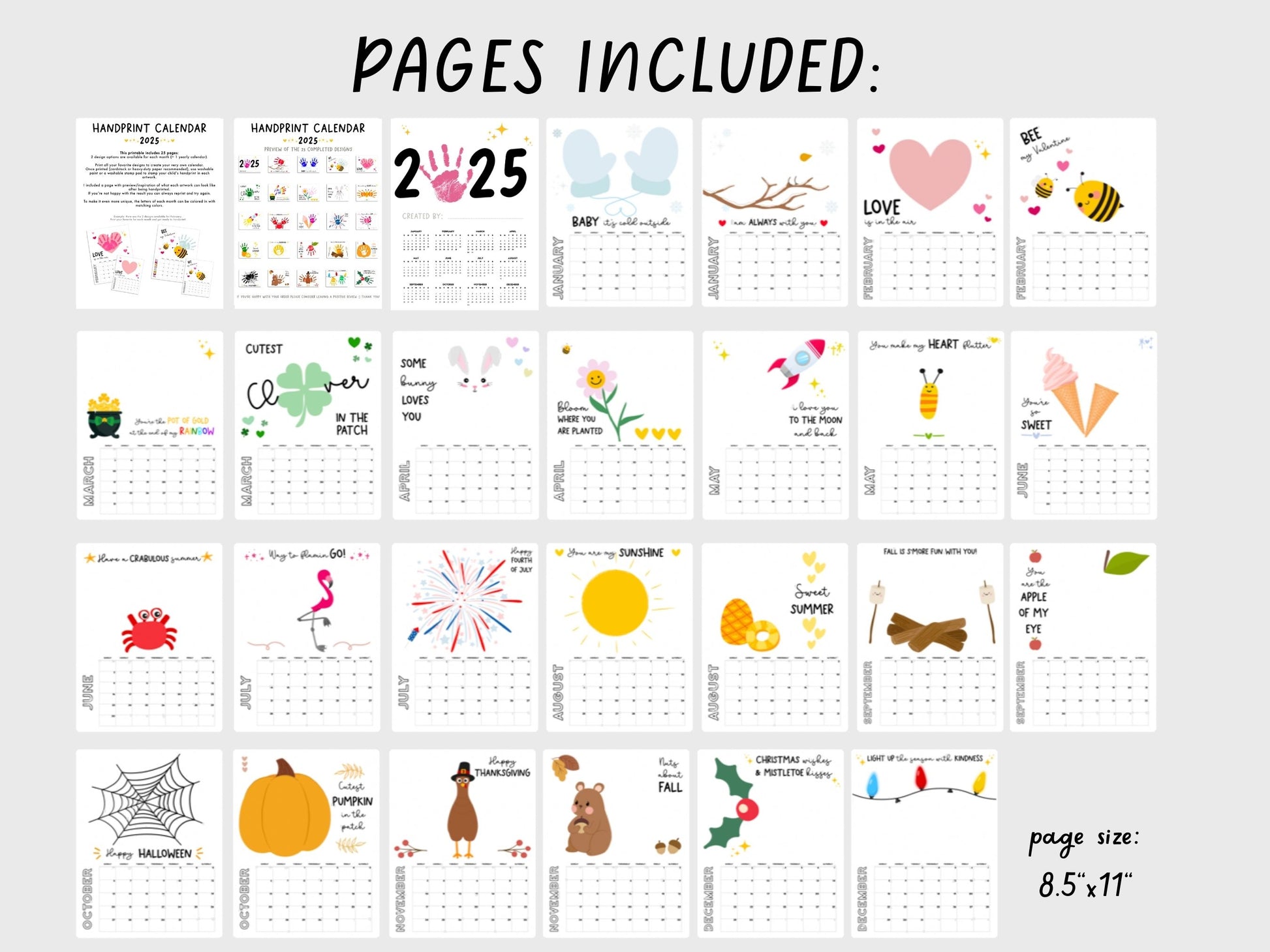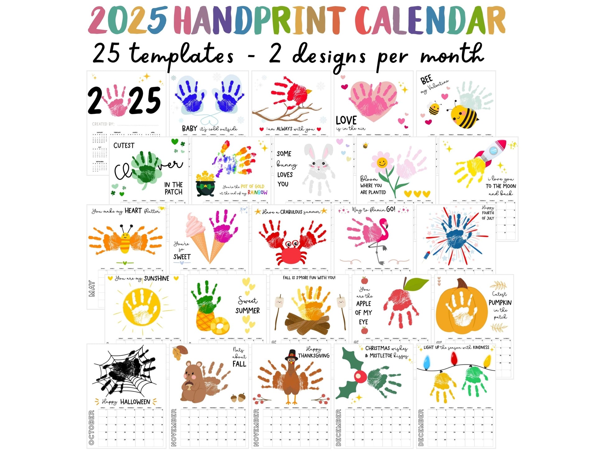This Printable 2025 handprint calendar includes 25 cute printable pages to easily create an adorable keepsake art calendar to keep as memories or to gift to family members.