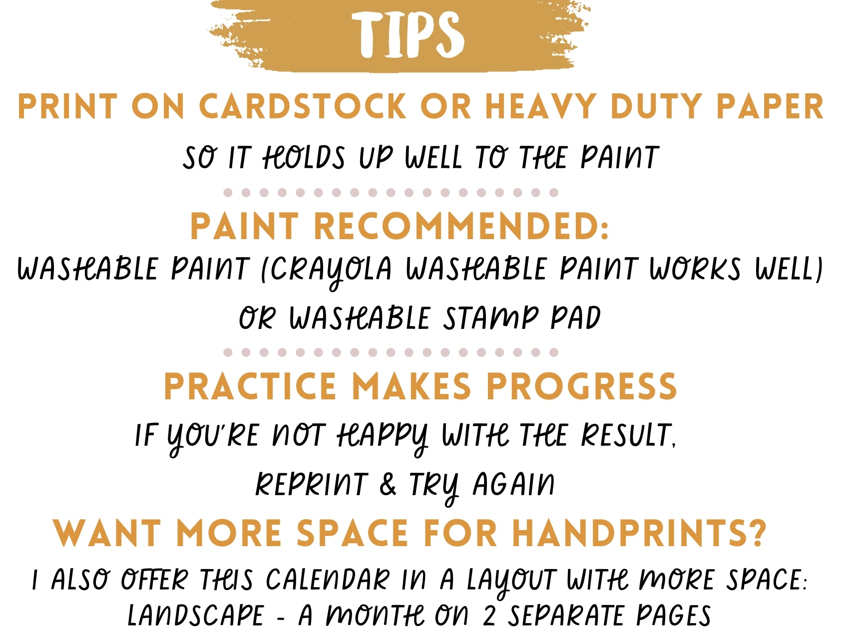 NEED MORE SPACE? >> If you want more space for your handprints, I offer this very same 2025 Handprint calendar in a landscape layout with a month on 2 separate pages |