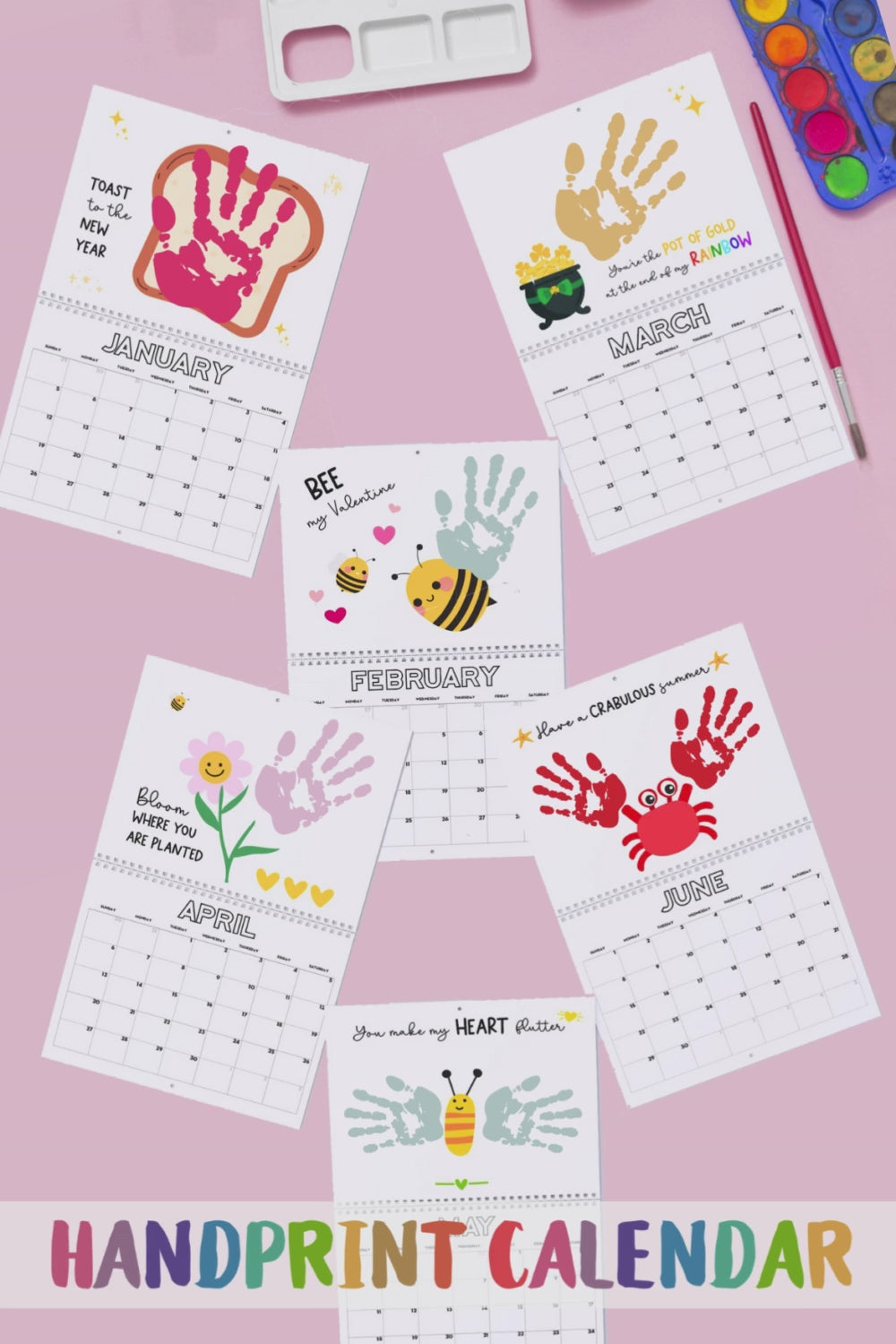 This Printable 2026 handprint calendar includes 26 cute printable pages to easily create an adorable keepsake art calendar to keep as memories or to gift to family members.