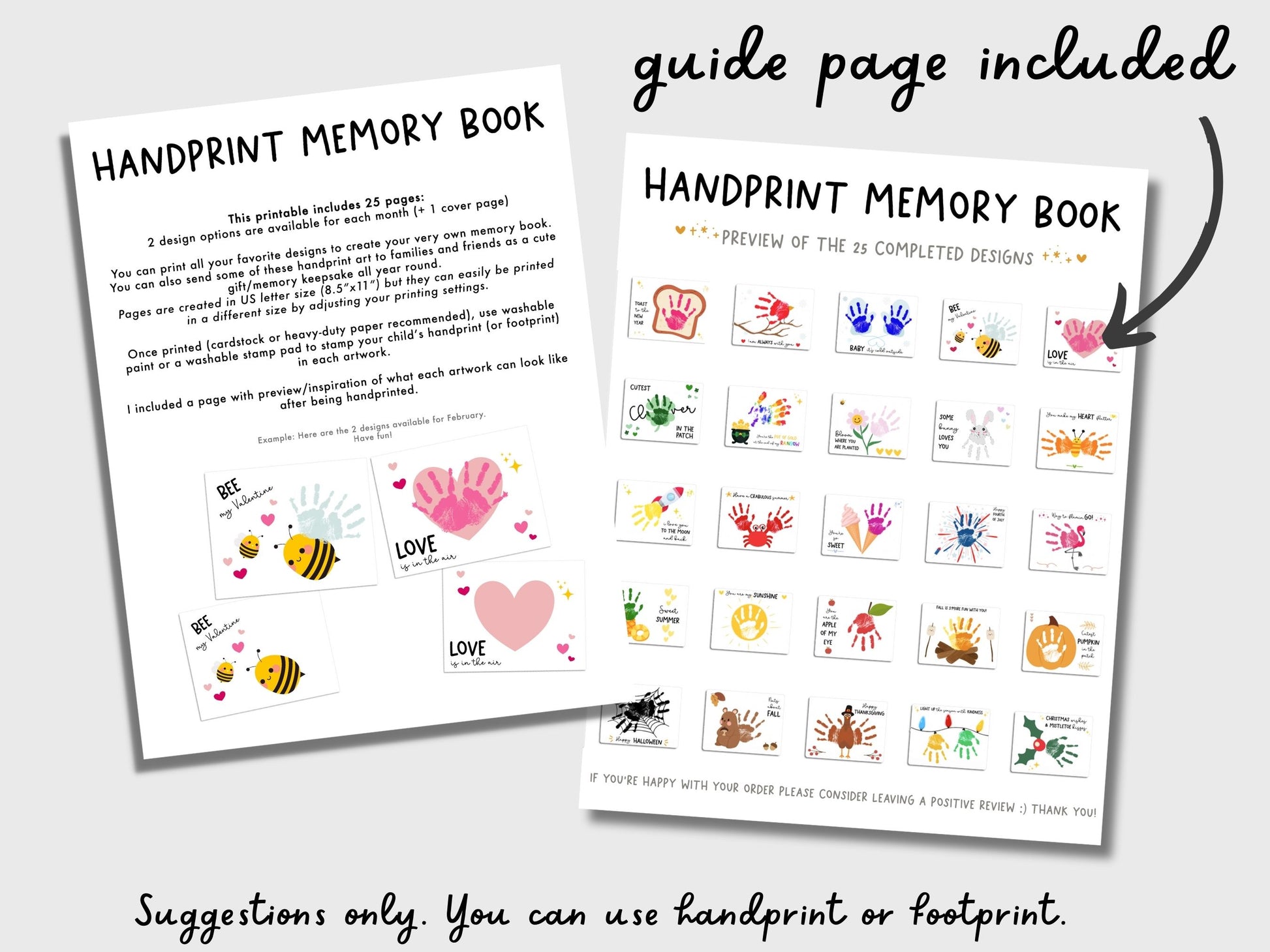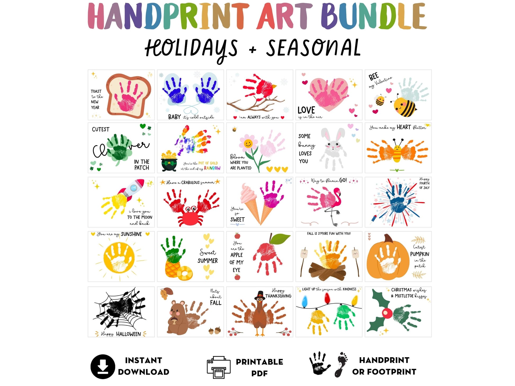 This Printable handprint art bundle includes 25 cute printable pages to easily create adorable keepsake art to keep as memories or to gift to family members.