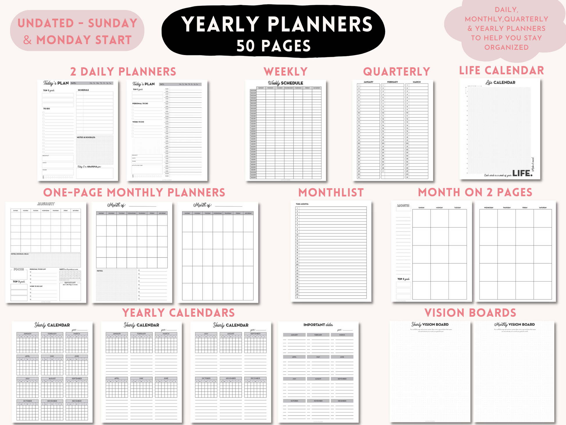 Mega BUNDLE: Ultimate Planner Bundle + Lettering Workbooks + Kawaii Stickers Pack