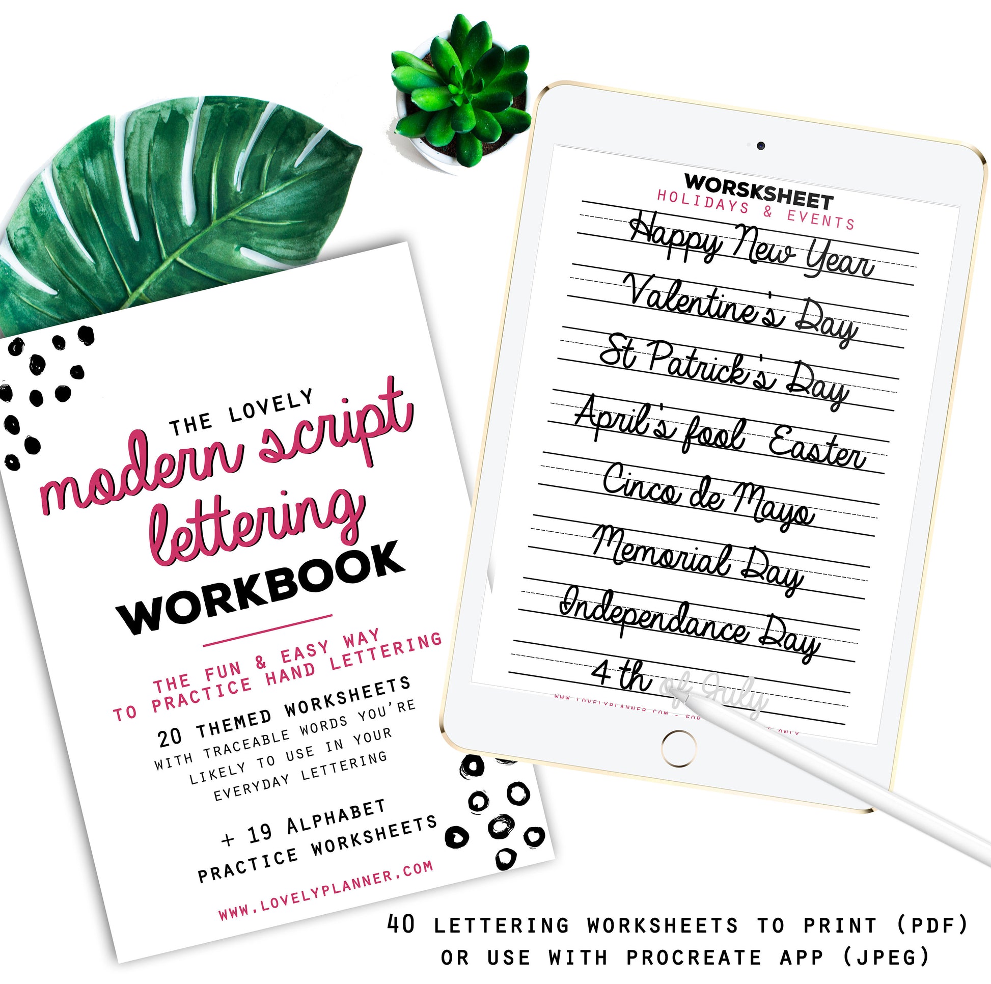 ►This Lettering Practice Workbook includes more than 40 pages to help you get started or improve your hand lettering in a fun and easy way.