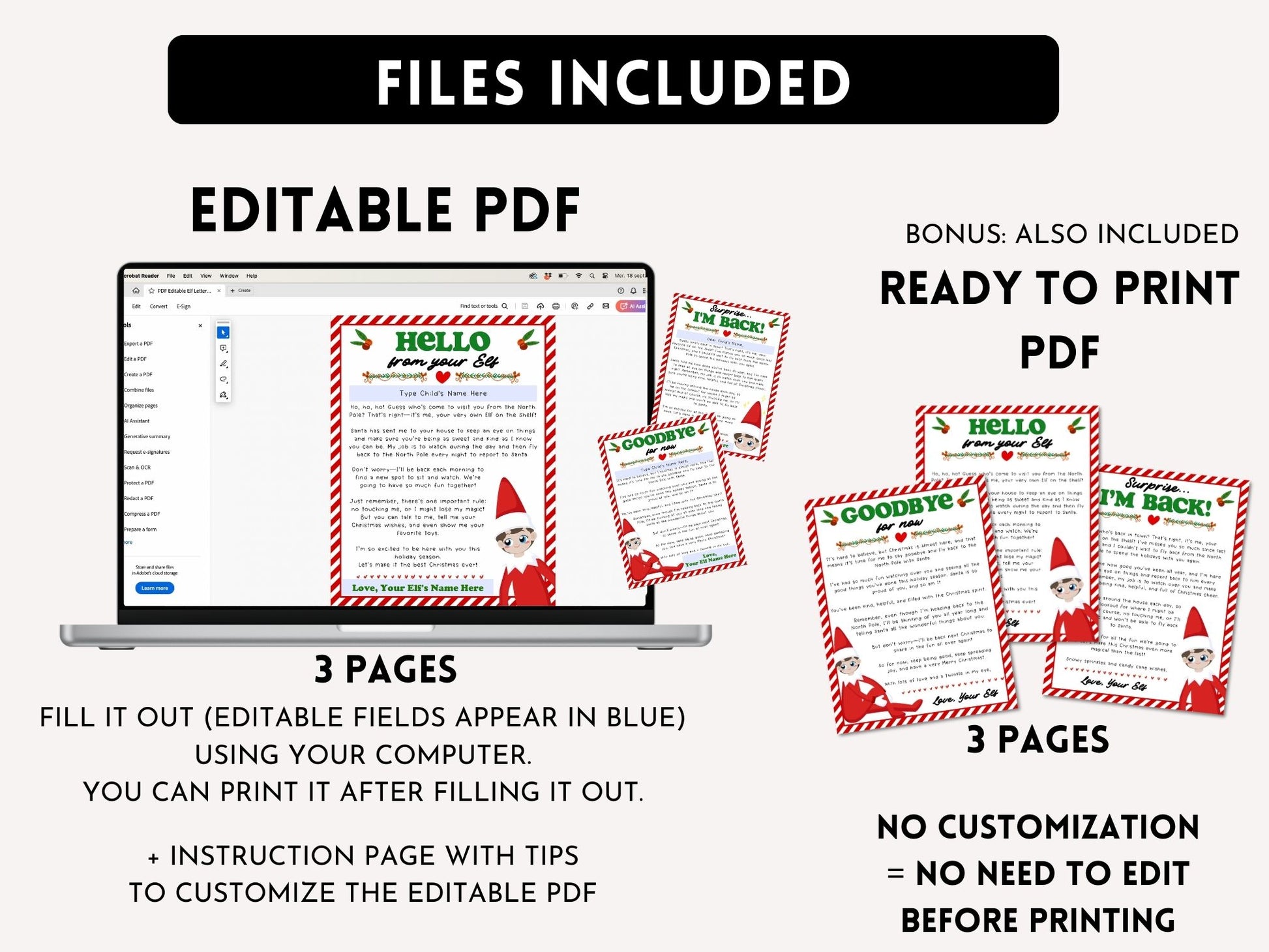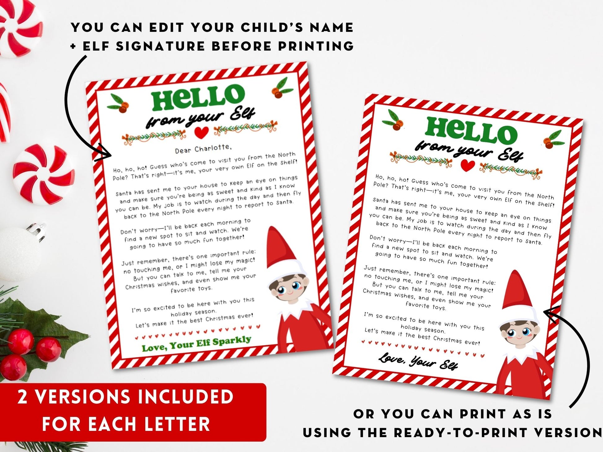 Editable Elf Letters Bundle, Set of 3 Christmas Elf Letters: "Hello from your Elf Letter" First Arrival Letter, "I'm Back" Return of the Elf Letter and "Goodbye from your Elf" Letter - Printable, Instant Download