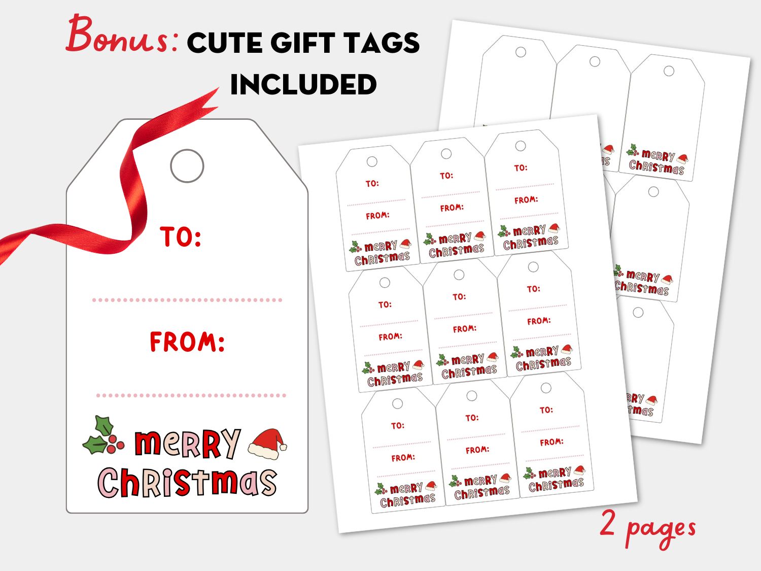 🎁 BONUS: 2 pages of printable holiday gift tags (9 per page) to attach to gifts or treats