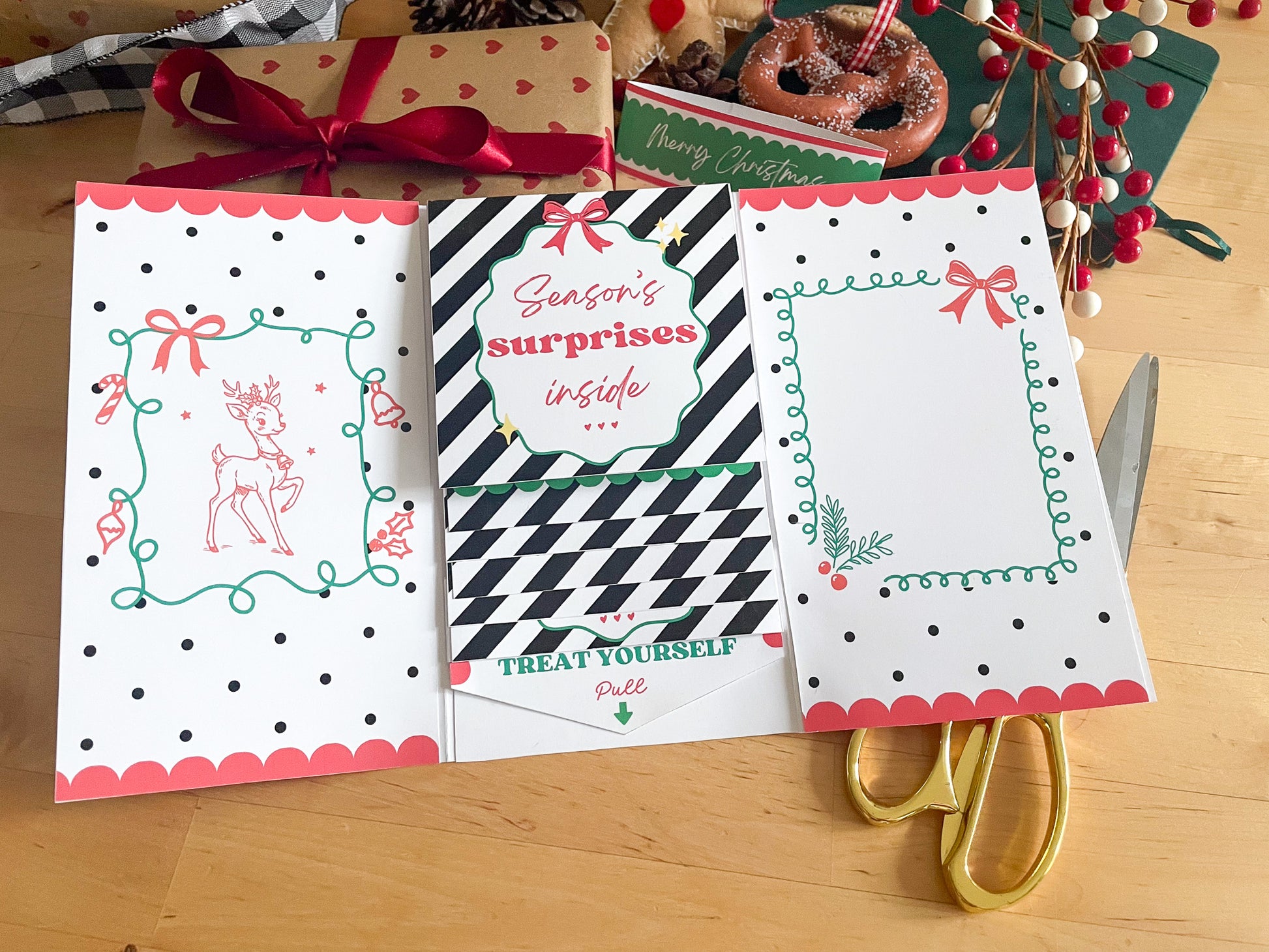 This printable waterfall card lets you present four gift cards in the cutest and most interactive way! Simply print, assemble, and surprise your loved one with a personalized DIY gift they’ll never forget.