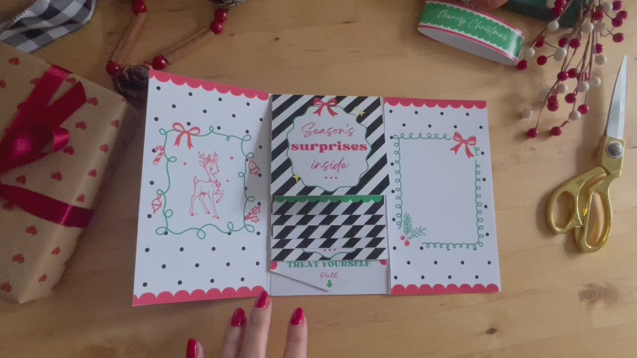 🎁 Printable Waterfall Card – Christmas Gift Card Holder (Holds 4 Gift Cards)