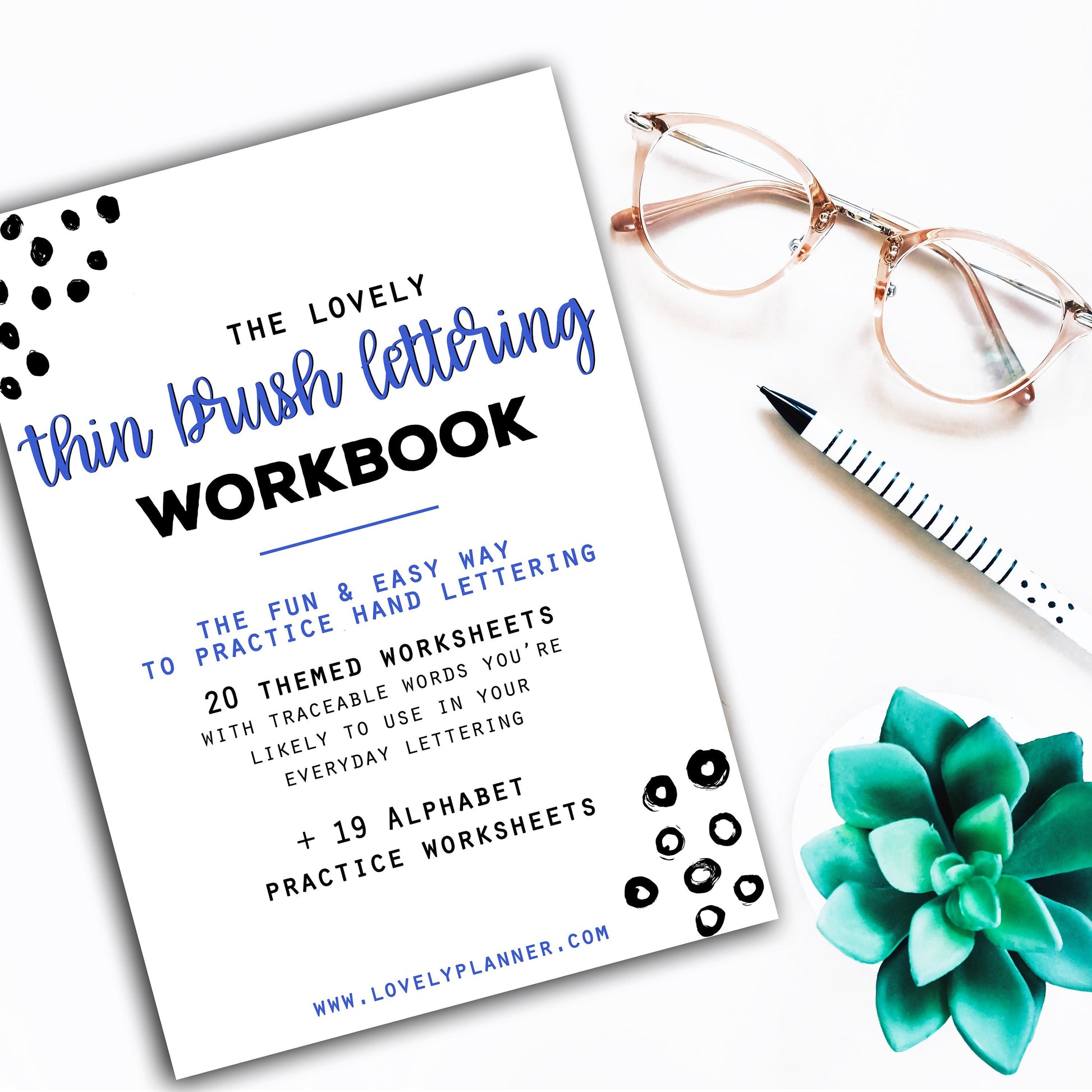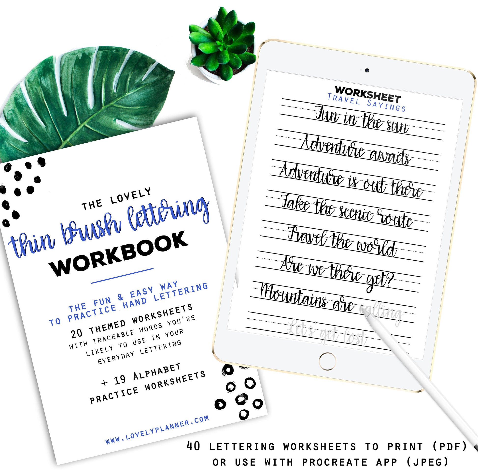 ►This Lovely Brush Lettering Practice Workbook includes more than 40 pages to help you get started or improve your hand lettering in a fun and easy way.