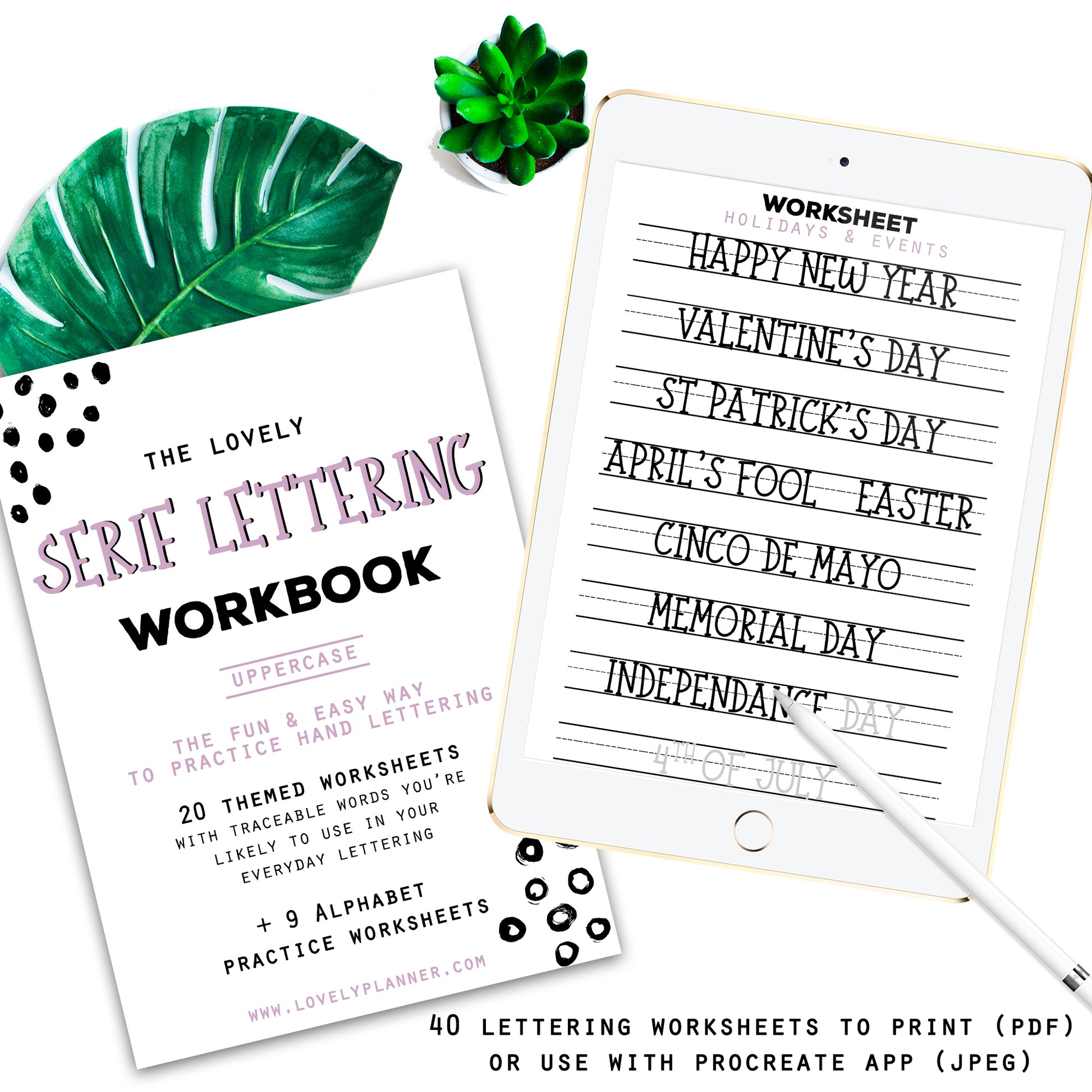 PRINTABLE PACK of 30 Serif Caps Lettering Practice Worksheet - Serif Lettering, Modern Calligraphy, Hand Lettering Practice Worksheets - Use with small brush pens.