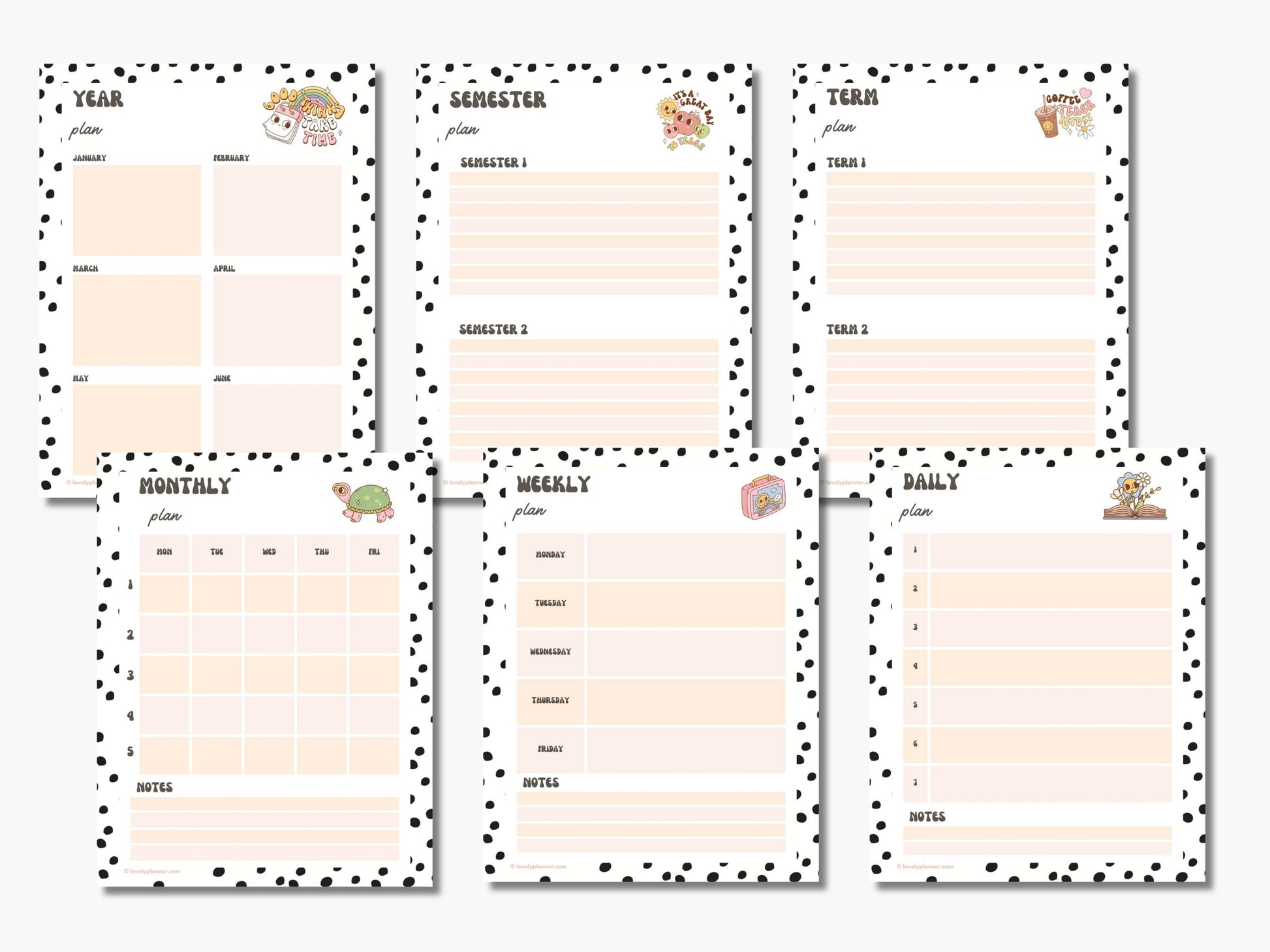 - Weekly & Monthly Planners: Keep track of lessons, meetings, and important dates.