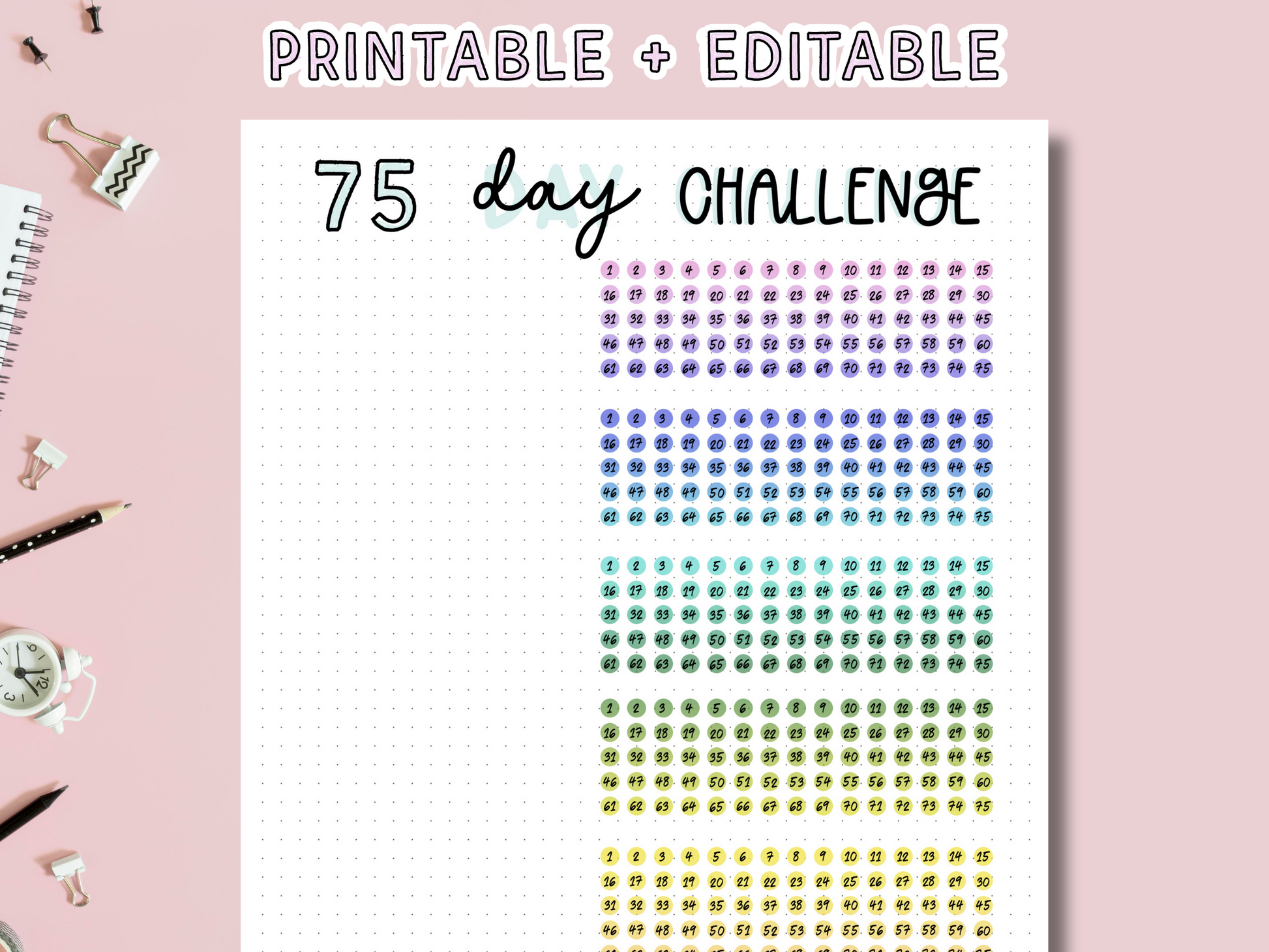 - 75-Day Custom Challenge Tracker - Editable PDF - value $3