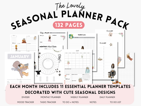 - The Seasonal Planner Pack: 132 pages, 12 months of cute seasonal planner pages - value: $25