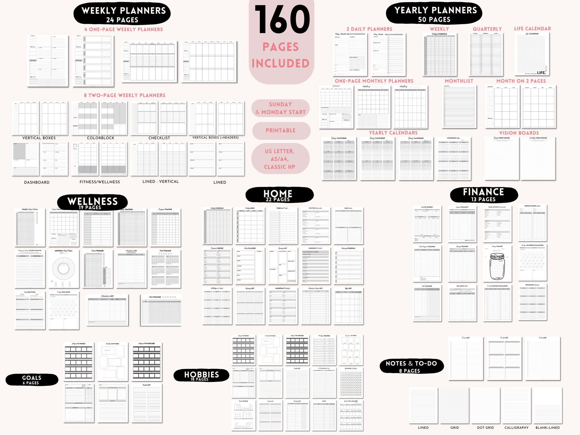The Ultimate Planner Bundle: 160 printable planner inserts in 3 sizes (US Letter, Classic HP, A5) - value: $105