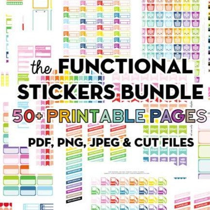 The Functional Planner Stickers Pack: 50 sheets in 4 formats (PDF, PNG transparent background, JPEG, and Silhouette Cut Files) - value: $100