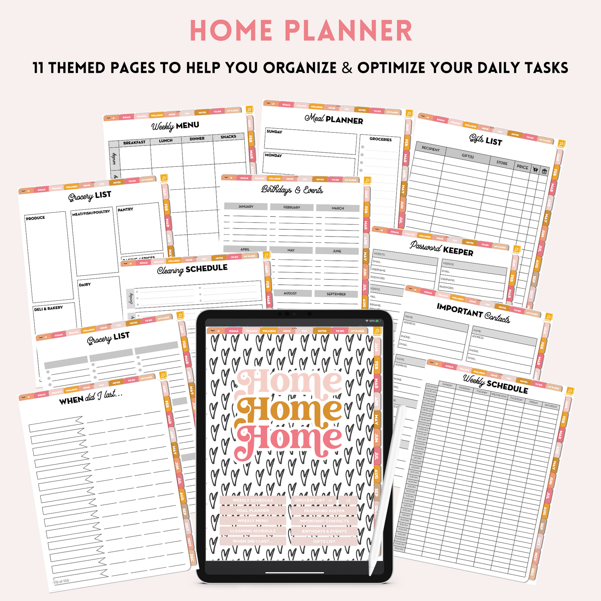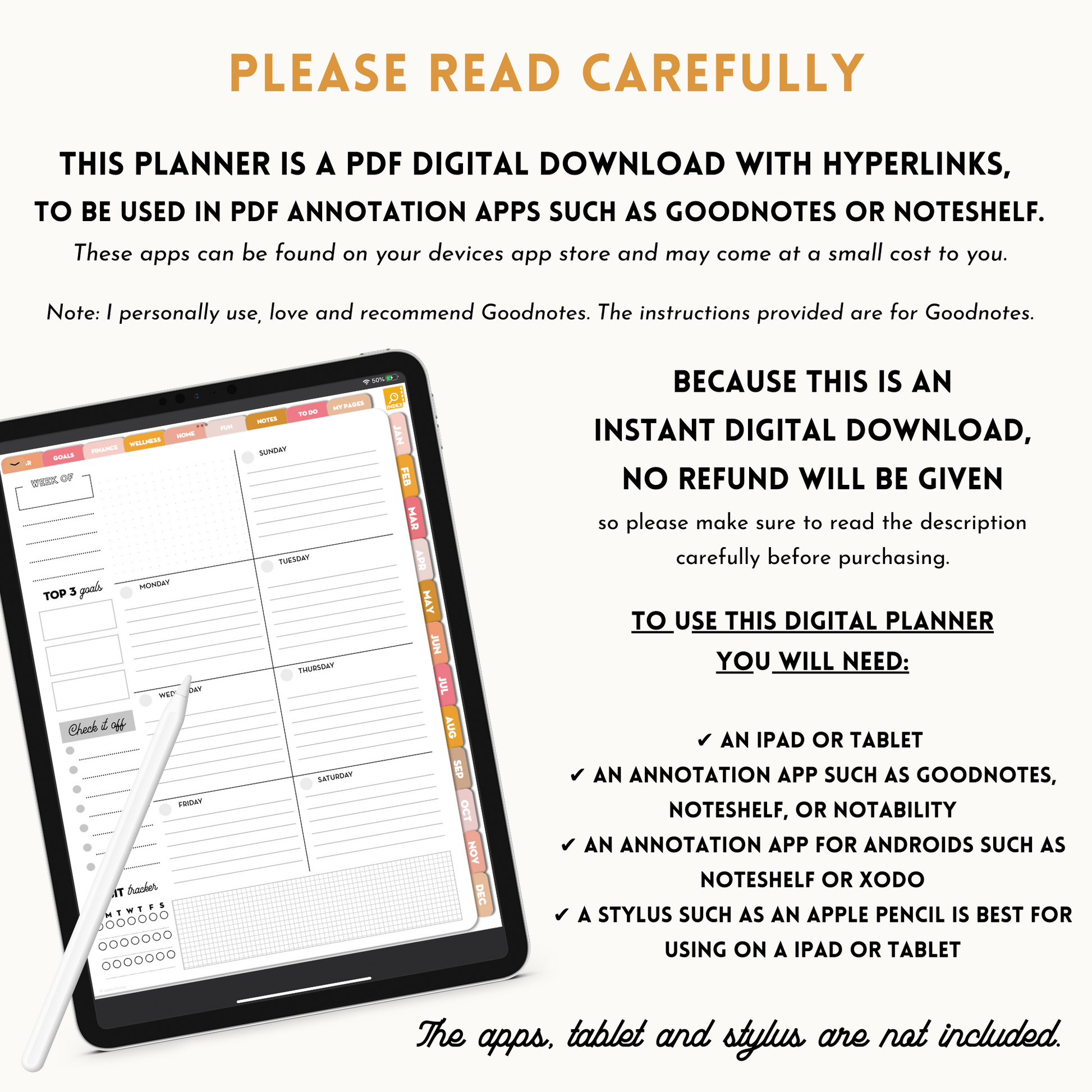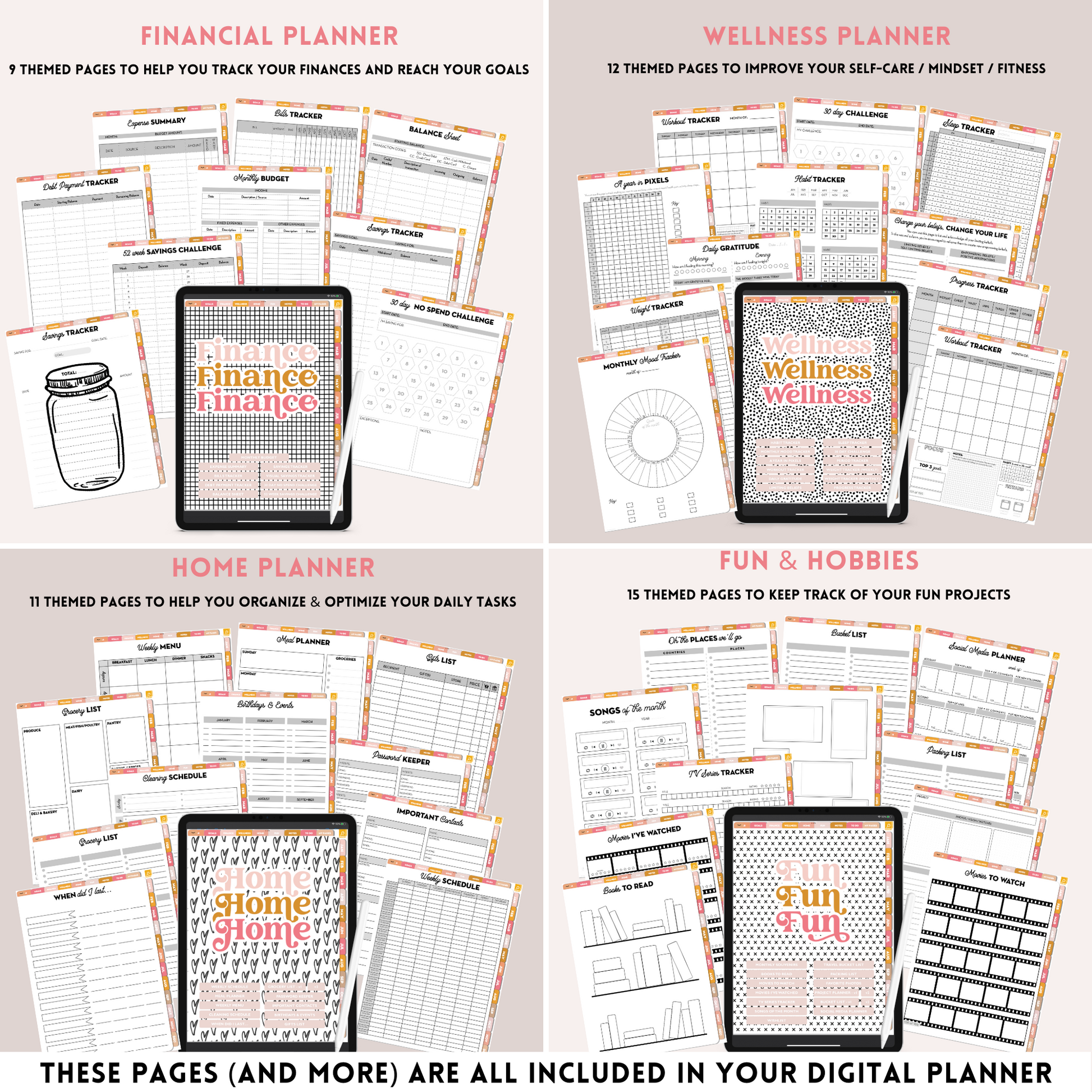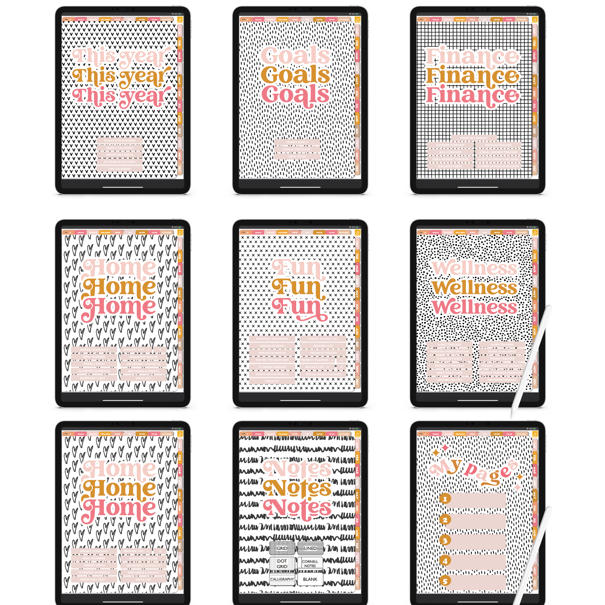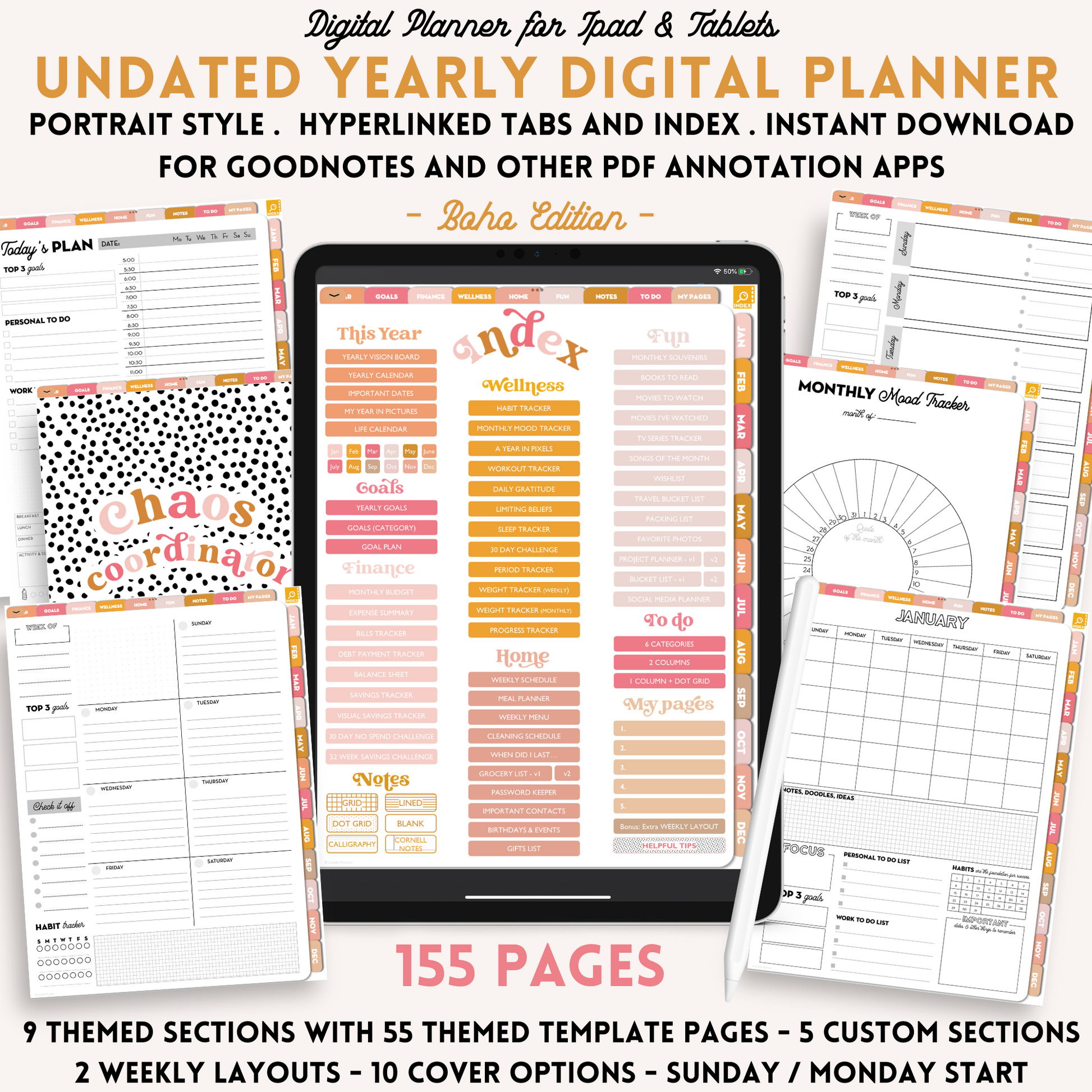 Organize every aspect of your life with this undated yearly all-in-one digital planner for your iPad or tablet.